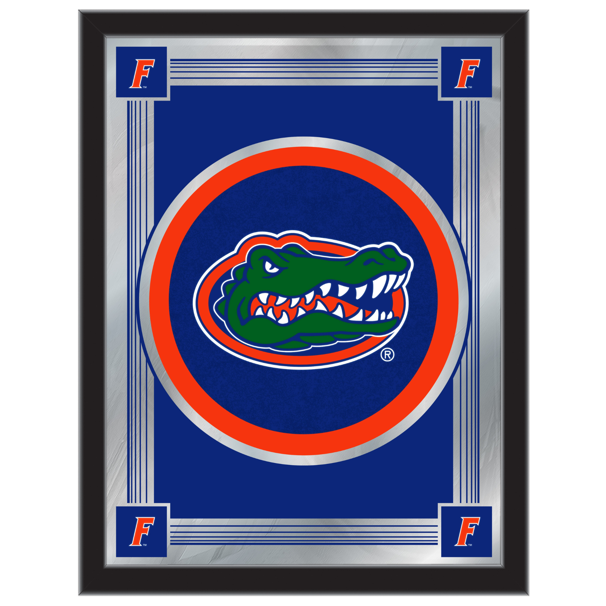 Show your school pride with this Official Licensed Logo Mirror. With its simple but elegant design, colors burst through the 1/8" thick glass and are highlighted by the mirrored accents. Framed with a black, 1 1/4 wrapped wood frame with saw tooth hangers, this 17"(W) x 22"(H) mirror is ideal for your office, garage, or any room of the house.