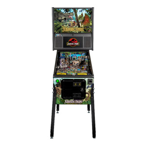The Pro and Premium models also feature a Jungle Adventure Vehicle target in the middle of the playfield that is a spinning Newton Ball. This kinetic target registers direct hits, determines the direction players navigate on the island during gameplay, and lights T. Rex modes. Both models include three full sized flippers, four custom ramps, a spinning “Spitter” target, in-lane up/down lock post that sets up critical playfield shots and distinctive hand-drawn art highlighting iconic dinosaurs from the series.