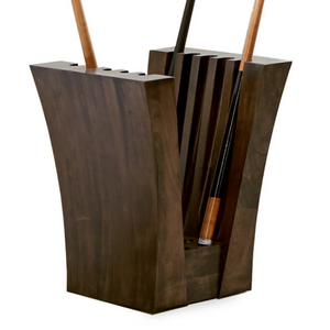 The City Floor Standing Cue Rack holds 10 of your favorite pool cues at a gentle angle. The City Floor Rack is an original California House design made to sit on the floor as a decorative object to compliment any game room.