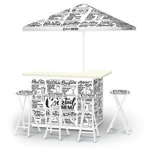 Our Bars, Umbrellas, and Stools can also be customized.