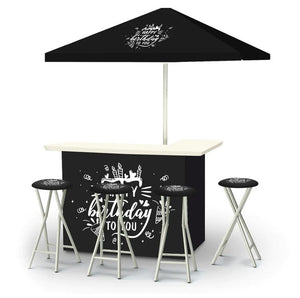 Our Bars, Umbrellas, and Stools can also be customized.