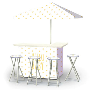 Our Bars, Umbrellas, and Stools can also be customized.