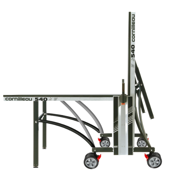 The patented "Compact Technology®" system ensures optimum safety, easy movement and minimizes storage space requirements. 4 large ball bearing wheels with 2 brakes. Excellent mobility and leaves no mark on the floor. The frame is made of a zinc and aluminum alloy. This 50mm thick structure ensures the perfect flatness. Adjustable leg pads to get a perfectly flat playing surface. Using a central release handle, the table can be opened and closed with extreme ease. The net swivels automatically between the two panels when you close the table, further optimizing storage space and providing better safety when stored. The 540 ITTF is designed for the perfect family ping pong tournaments.
