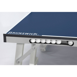 Our mid-range model features a dynamic blue playing surface with matching net and net clips. The 18mm-thick playing field provides great stability and performance while built in compartments grant convenient storage for the included two paddle / 3-ball accessory set. The table features a durable, mobile design with fold-up capability for easy storage. Some assembly required.